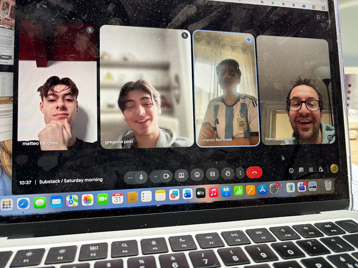 E la senti, anche nella call di sabato mattina all’alba, quando chiacchierano per un’oretta un autore che naviga verso i 42 e tre ragazzi desiderosi che nuotano attorno alla maggiore età.